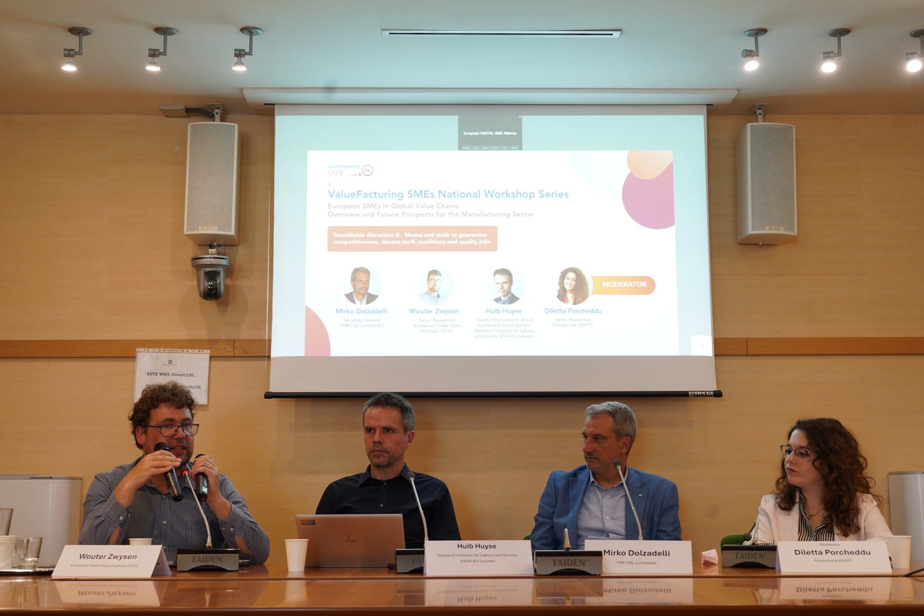 Panelistët që ndanë mendimet dhe përvojat e tyre ishin Antonio Grasso, Drejtor për Çështjet Publike në Aleancën Evropiane të NVM-ve Digjitale; Sergio Ventriscelli, Nënkryetar i Confimi Industria; Valentina Guerra, Drejtore e Politikave për Çështje Sociale dhe Trajnime në SME United; Aurora Rossi, këshilltare politike pranë IndustriAll Europe; dhe Glenda Quintini, Shefe e Aftësive dhe Përgatitjes për të Ardhmen në OECD.